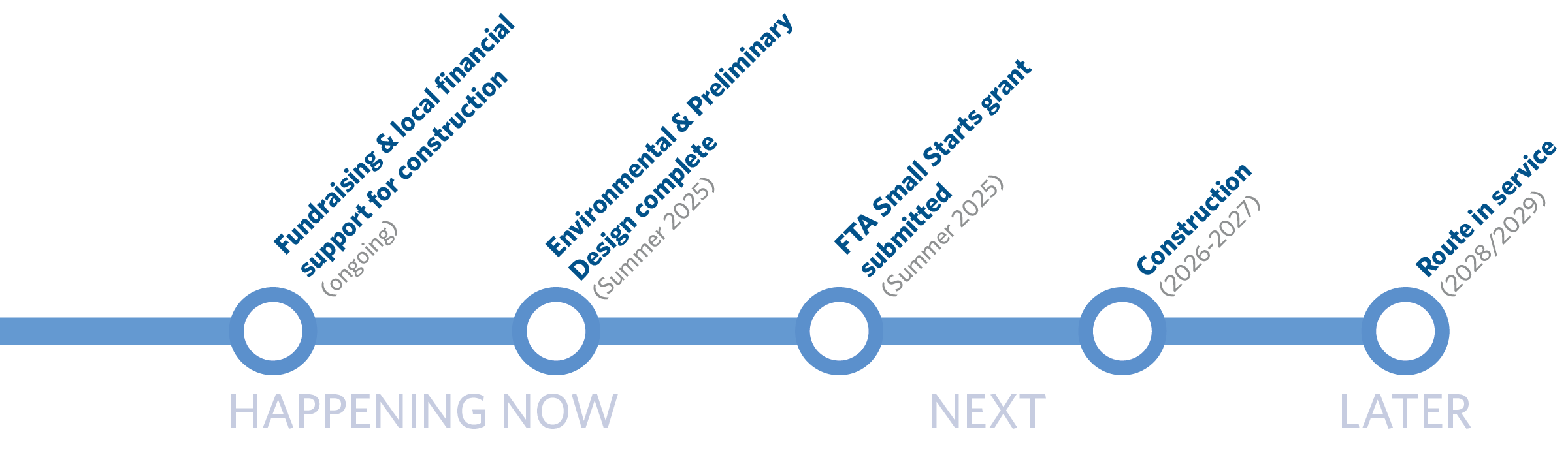 - Offers 15-minute service throughout the day and 30-minute intervals in early morning/late evening